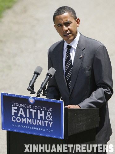 資料圖片:7月1日,美國民主黨總統競選人奧巴馬在俄亥俄州的曾斯維爾發表講話。新華社/路透