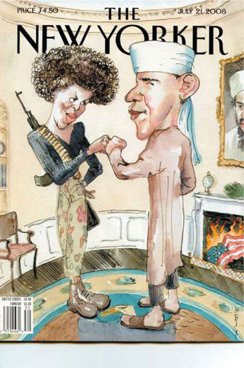中國日報網環球在線消息:美國大選日益臨近,美國媒體也變得越來越熱鬧。7月14日出版的《紐約客》雜志的封面漫畫把奧巴馬及其夫人描繪成了恐怖分子,引發軒然大波。雖然該周刊辯解稱,這是在諷刺奧巴馬對手的抹黑行為,但民主黨和共和黨陣營對這幅漫畫卻異口同聲地表達了不滿,可謂兩邊不討好。