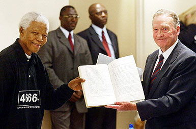 2004年9月21日,前監獄警官卡德將兩本珍貴的日記交還曼德拉