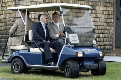 而共和黨總統候選人麥凱恩呢?本周他最精彩的瞬間也就是與老布什在高爾夫球車上共渡周末。