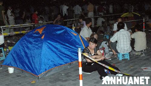 7月25日凌晨,等待購票的人們在購票區附近休息。新華社記者 李尕 攝