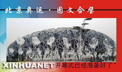中國日?qǐng)?bào)網(wǎng)環(huán)球在線消息:舉世矚目的北京奧運(yùn)會(huì)開幕式8月8日晚將在北京國家體育場(chǎng)“鳥巢”舉行,各項(xiàng)準(zhǔn)備工作已全面進(jìn)入臨戰(zhàn)狀態(tài)。開幕式總導(dǎo)演張藝謀在接受新華社記者采訪時(shí)表示,一切都已準(zhǔn)備就緒,唯一擔(dān)心的就是開幕式時(shí)下雨。