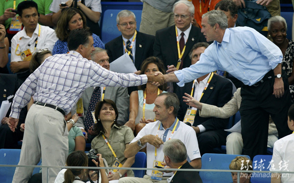 前共和黨總統候選人羅姆尼也來到北京觀戰奧運。