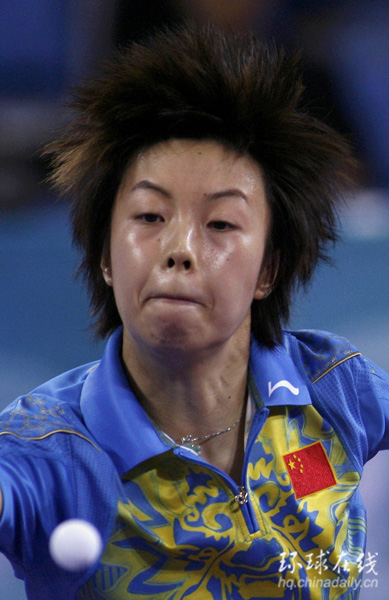 中國日報網站環球在線消息:北京時間8月22日,北京奧運會乒乓球比賽展開女單半決賽的爭奪,在剛剛結束的一場焦點對決中,頭號種子張怡寧發揮出色,在先失一局的不利情況下連扳四局,以4-1(9-11、11-8、12-10、11-8、11-5)逆轉戰勝新加坡選手李佳薇,由于另一場半決賽在兩名中國選手王楠、郭躍之間進行,就此為中國乒乓球隊鎖定了女單金牌。