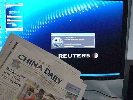 圖為:擺在路透社工作臺(tái)的《中國日?qǐng)?bào)》