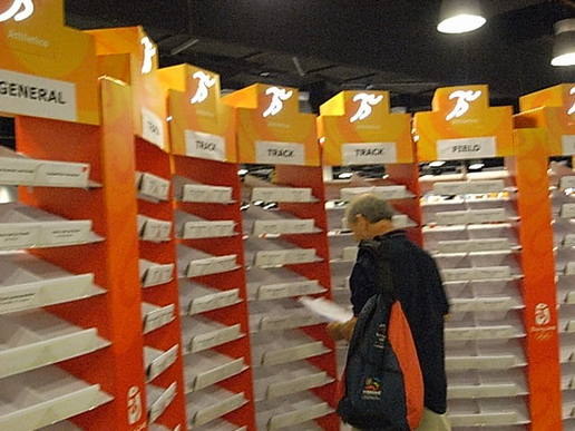 圖為:一名工作人員在查詢田徑項目賽事結果