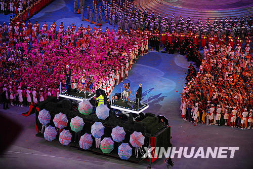 8月24日晚,第29屆夏季奧林匹克運動會閉幕式在北京國家體育場——“鳥巢”舉行。這是倫敦巴士開進會場。新華社記者郭大岳攝