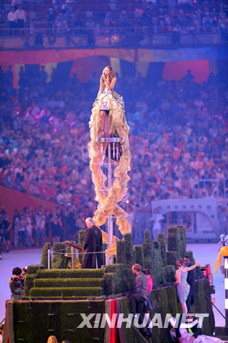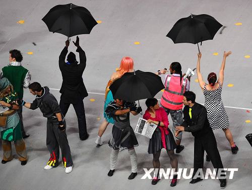 8月24日,2008年北京奧運會在國家體育場——“鳥巢”隆重閉幕。這是閉幕式上的“倫敦8分鐘”表演。倫敦是2012年奧運會主辦城市。新華社記者郭大岳攝