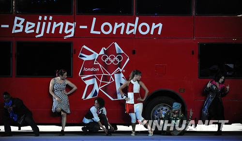 8月24日晚,北京奧運會閉幕式在北京國家體育場——“鳥巢”隆重舉行。這是閉幕式上表演“倫敦8分鐘”。新華社記者李尕攝