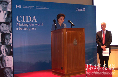 中國(guó)日?qǐng)?bào)網(wǎng)環(huán)球在線(xiàn)消息:8月25日,加拿大駐華大使館舉行設(shè)立“四川地震救災(zāi)基金”招待會(huì),加拿大政府官員對(duì)該國(guó)捐款總額和款項(xiàng)分配進(jìn)行了介紹。加拿大駐華大使羅嵐、中國(guó)商務(wù)部部長(zhǎng)助理仇鴻、民政部等部門(mén)官員及聯(lián)合國(guó)代表出席了此次活動(dòng)。
