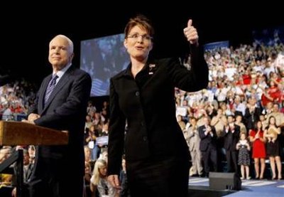 北京時間29日23點左右,已穩獲共和黨總統候選人提名的麥凱恩宣布選擇阿拉斯加州美女州長佩林為競選伙伴。這一出人意料的選擇震驚美政界,但與麥凱恩競選活動試圖吸引女選民——特別是因希拉里退出總統競選而異常沮喪的女性支持者——的目標一致。