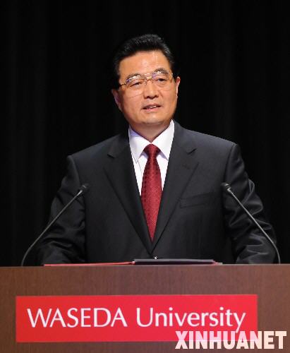 5月8日,中國國家主席胡錦濤在日本早稻田大學發表重要演講。 新華社記者李學仁攝