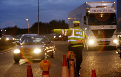 9月11日,英國(guó)通往隧道的公路出現(xiàn)大量擁堵,警察在疏導(dǎo)交通。