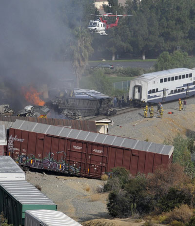 美國客運史上最慘重的事故發(fā)生在2005年1月26日,在加利福尼亞州西南部的格倫代爾市,一名叫阿爾瓦雷斯的男子將澆灌了汽油的越野車停靠在火車軌道上企圖自殺,但他在最后一刻改變主意棄車逃命,然而停放的越野車使得一列火車沖出軌道并撞上另一列對向行駛的火車。這起事件共造成11人喪生,至少180人受傷,而阿爾瓦雷斯自己也因此被判處11次終身監(jiān)禁,不得保釋。
