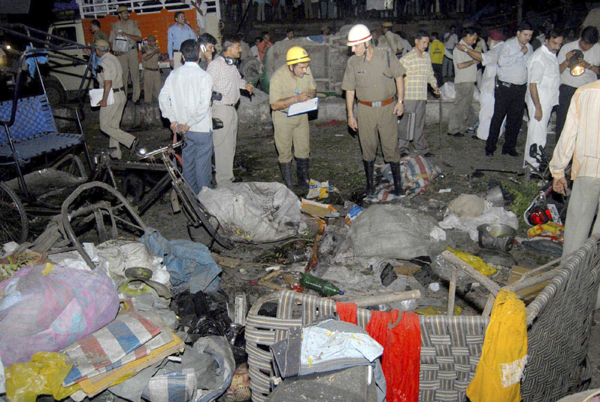 據(jù)英國媒體報道,印度警方稱,當(dāng)天下午6點15分左右,第一起爆炸發(fā)生在卡羅爾巴喀市場,當(dāng)場造成數(shù)十人死傷。在隨后的40分鐘里,市中心多處地點相繼發(fā)生爆炸,其中2起發(fā)生在市中心的康諾特普萊斯市場附近,炸彈被放置在垃圾箱里。這里是新德里最繁華的商業(yè)區(qū),事發(fā)當(dāng)天正值周末,因此游客和當(dāng)?shù)厥忻窀裢舛唷?jù)一位目擊者說,當(dāng)時爆炸現(xiàn)場附近大約有100至200人。
