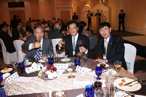 中央政策研究室副主任鄭新立、日本民主黨副代表、眾議院議員岡田克也、中國人民對外友好協會會長陳昊蘇把酒言歡