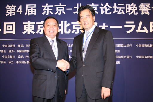 中國日報網環球在線消息:9月15日晚,第四屆“東京-北京”論壇的晚餐會上,國務院新聞辦主任王晨與日本民主黨副代表、眾議院議員岡田克也親切握手。