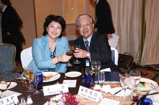 中國日報網(wǎng)環(huán)球在線消息:9月15日晚,第四屆“東京-北京”論壇的晚餐會上,九江市市長王萍與日本野村證券株式會社董事兼執(zhí)行會長古賀信行相談甚歡。(中國日報網(wǎng)圖片)