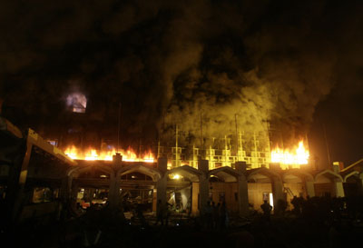 據警方初步調查,一輛裝載炸藥的汽車在沖向萬豪酒店門口后爆炸。由于爆炸威力巨大,包括大堂在內的酒店主體建筑被毀,酒店大部分建筑起火,酒店附近的幾個建筑物也不同程度受損。