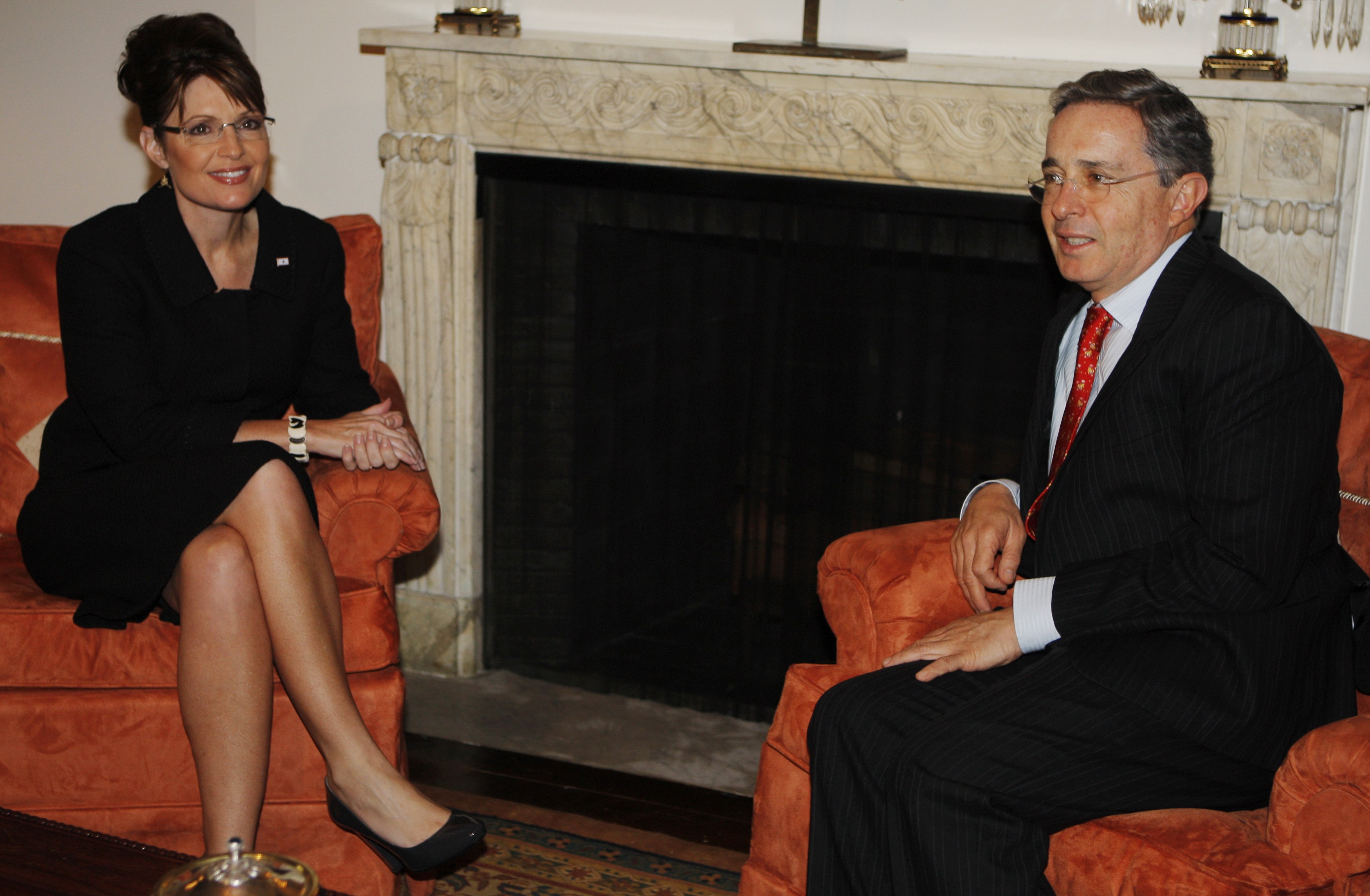 中國日報網環球在線消息:美國共和黨副總統候選人佩林9月23日在紐約會見了參加聯大的阿富汗總統卡爾扎伊和哥倫比亞總統烏里韋,這是她第一次和外國領導人舉行會面。