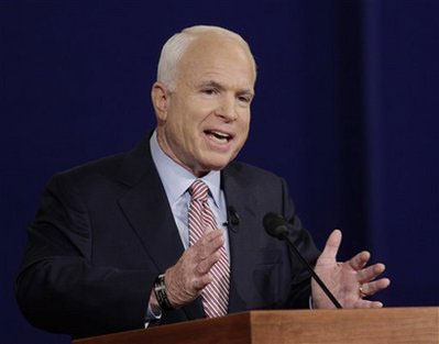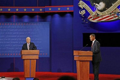 麥凱恩與奧巴馬參加首場全國電視辯論。
