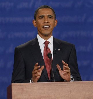 中國日報網環球在線消息:當地時間9月26日晚,美國共和黨總統候選人麥凱恩與民主黨總統候選人奧巴馬之間的首場全國電視辯論在密西西比大學舉行,辯論主題是外交政策和國家安全。他們還將于10月7日和15日再進行兩場辯論。此外,兩黨副總統候選人佩林和拜登將于10月2日進行辯論。美國選民將在今年11月4日投票選出新總統。正、副總統候選人選前的公開辯論將對選舉結果產生重要影響。