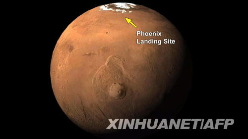 這張美國宇航局9月30日發布的照片顯示:“鳳凰”號火星探測器在火星上的著陸點。美國宇航局29日宣布,“鳳凰”號火星探測器又有重大發現:火星上也下雪。不過探測結果表明,雪在落至火星表面前就蒸發揮散了。新華社/法新