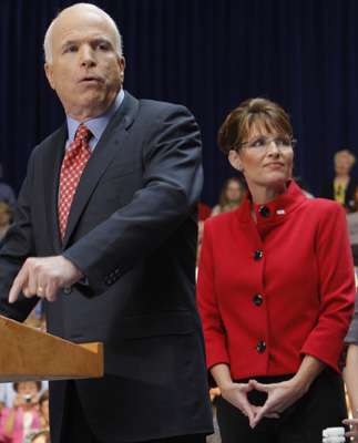 美國共和黨副總統候選人佩林(右)被指可能拖累麥凱恩(左)的選情