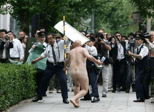 英國(guó)《每日電訊報(bào)》援引當(dāng)?shù)孛襟w報(bào)道說(shuō),這名男子一絲不掛跳入日本明仁天皇宮邸前的護(hù)城河,然后上岸向警方投擲石塊并擊中兩名警察。