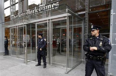 10月22日,警察在《紐約時報》總部外執勤。(英國媒體圖片)