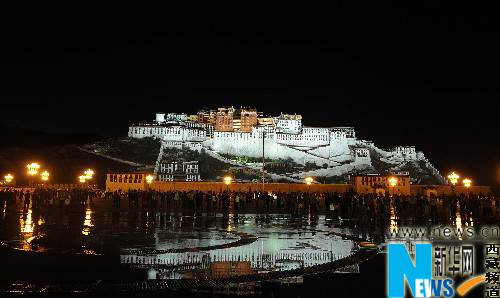 這是9月1日拍攝的布達拉宮廣場夜景。