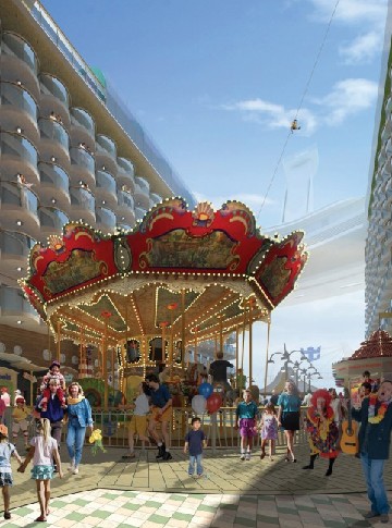 此外,設(shè)計師還表示, “海洋綠洲”號將會配備15個餐廳和酒吧,一家大型賭場,一座劇院,一道攀巖墻和兩家夜總會。如果進展順利的話,“海洋綠洲”號最快將于2009年11月進行處女航行。