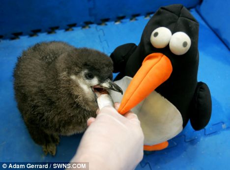 企鵝寶寶不再孤單 企鵝玩偶成其最好玩伴
