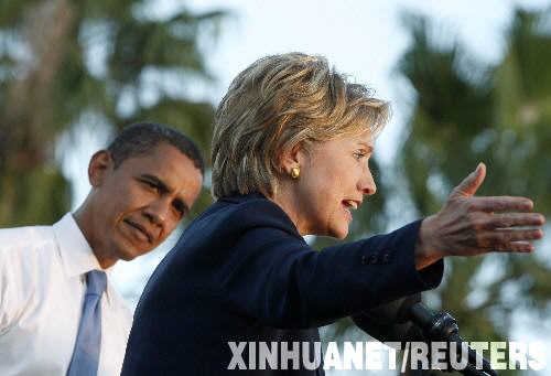 11月13日,美國媒體報道,奧巴馬過渡班子正在考慮任命前第一夫人希拉里為下屆政府國務卿。這是10月20日在佛羅里達州奧蘭多拍攝的希拉里(右)和奧巴馬參加競選集會的資料照片。新華社/路透