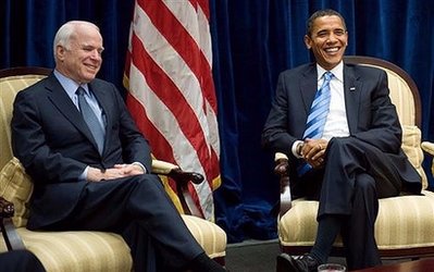 中國(guó)日?qǐng)?bào)網(wǎng)環(huán)球在線(xiàn)消息:據(jù)美國(guó)媒體報(bào)道,美國(guó)當(dāng)選總統(tǒng)奧巴馬11月17日與總統(tǒng)選舉中的共和黨對(duì)手麥凱恩在芝加哥舉行會(huì)談,會(huì)后雙方一致表示將攜手合作,共同應(yīng)對(duì)金融危機(jī)等美國(guó)面臨的重大挑戰(zhàn)。這是奧巴馬11月4日當(dāng)選總統(tǒng)以來(lái)與麥凱恩的首次會(huì)晤,但媒體認(rèn)為這更多是一個(gè)象征性的舉動(dòng)。