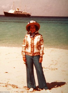 在這張照片中,女王在沙灘上擺出很隨意的姿態,陽光映襯下的笑容顯得非常燦爛,只見她穿著桔黃花色和白色相間的東方風情的上衣,下身穿著上世紀70年代非常流行的藍色喇叭褲,頭上戴著遮陽帽,手里還拿著太陽鏡。要不是照片背景中出現英國王室游艇“大不列顛”號,人們看到這張裝扮隨意的“女子”照片時會以為來自普通人的家庭相冊。