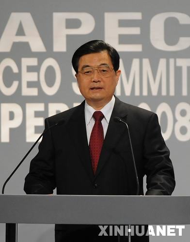 圖為11月21日,國家主席胡錦濤在秘魯首都利馬出席亞太經合組織工商領導人峰會并發表重要演講。新華社記者李學仁攝