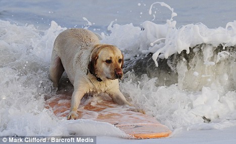 圖為:會(huì)沖浪的獵狗哈維