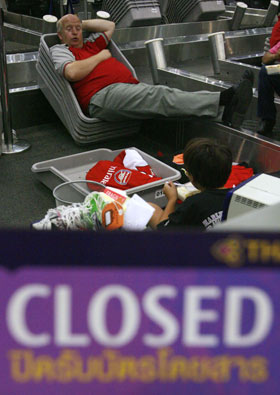目前,所有出港航班已經(jīng)被迫取消,一些臨近入港航班則仍可降落在該機(jī)場(chǎng)。機(jī)場(chǎng)管理局官員說(shuō),如果局勢(shì)繼續(xù)惡化,那么入港航班則可能被要求降落在曼谷周邊的其他機(jī)場(chǎng)。