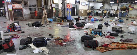 警方表示,26日深夜10時30分左右,在孟買南區著名的五星級泰姬瑪哈旅館(TajMahal Hotel)、奧拜羅旅館(Oberoi Hotel)、Colaba平價購物區等至少七處場所,以及名列世界文化遺產的賈特拉帕蒂.希瓦吉火車站(Chhatrapati ShivajiTerminus,又稱前維多利亞火車站),幾乎同時發生恐怖攻擊事件。
