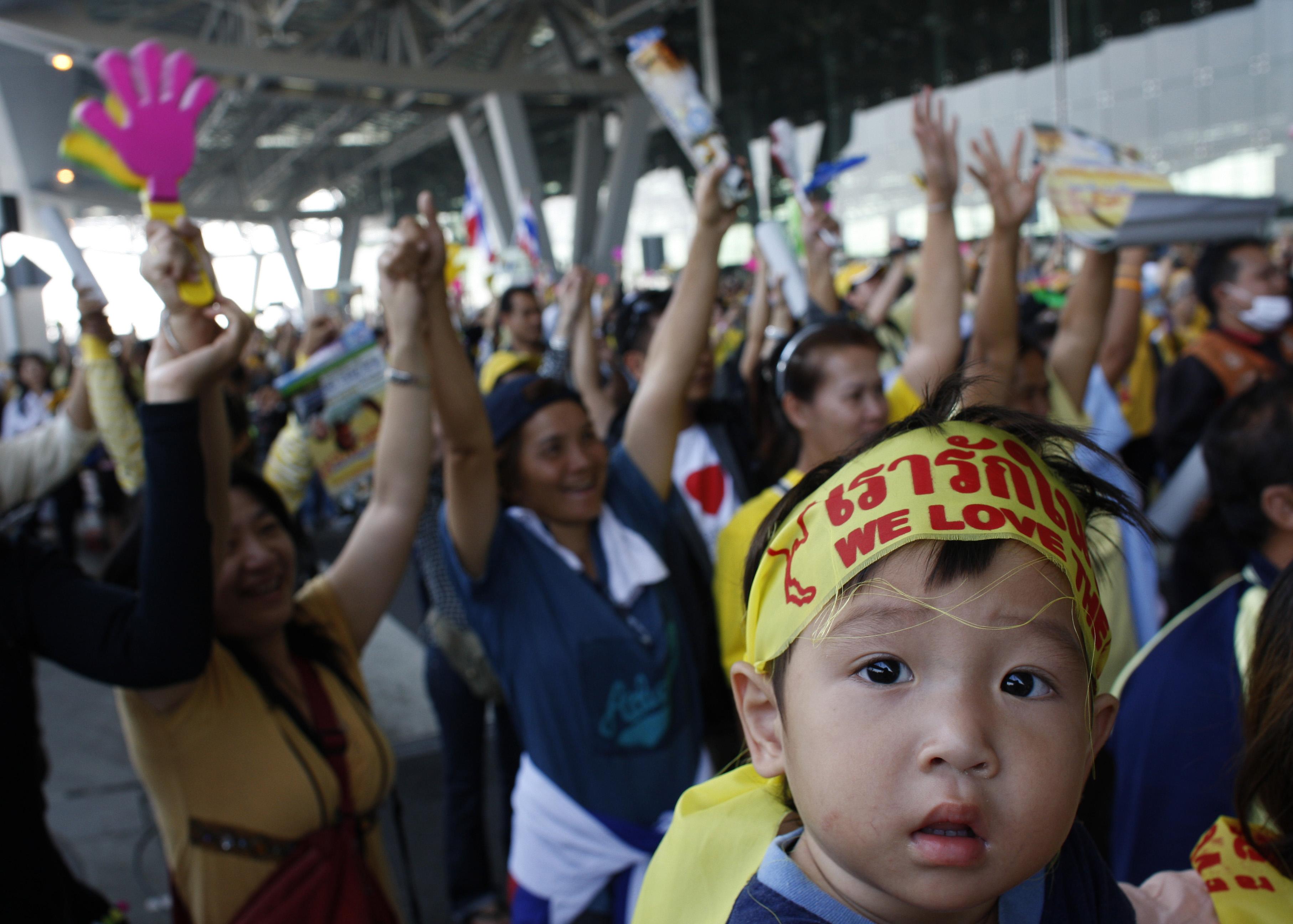 圖為:民盟支持者開始撤離機(jī)場 憲法法院裁決出爐后,親政府的“紅衫軍”十分憤怒,認(rèn)為法庭在結(jié)案陳詞后僅1小時便作出裁決,明顯是早就有了主意。數(shù)百名頌猜的支持者聚集在法院外宣泄憤怒之情,還一度切斷法院供電。有支持者指責(zé)憲法法院正在摧毀民主國家,應(yīng)向執(zhí)政聯(lián)盟道歉。一些分析人士擔(dān)憂“紅衫軍”可能使用暴力手段進(jìn)行報(bào)復(fù),泰國兩派對立也更為嚴(yán)重。 而身在國外的前總理他信在接受記者采訪時說,泰國還可能發(fā)生政變,只是政變形式從軍事政變演變?yōu)橥ㄟ^司法系統(tǒng)進(jìn)行政變。他信此前多次攻擊泰國目前的司法系統(tǒng)因受到政治干預(yù)而失去公正。 ***泰國王避而不談當(dāng)前危機(jī) 針對國內(nèi)日益動蕩的政治局勢,不少人都把目光投向了泰國國王普密蓬。普密蓬是泰國在位時間最長的國王,因勤政愛民在民間享有崇高威望,是泰國最具影響力的政治人物。他的立場將決定泰國政治的未來走向。去年也正是因?yàn)樗哪S,軍方才發(fā)動政變將前總理他信趕下臺。 12月5日是普密蓬國王的81歲生日。泰國2日下午在曼谷的五世王廣場舉行了盛大的閱兵式慶祝國王生日。接受檢閱的泰國各軍種官兵在武裝部隊(duì)總司令的帶領(lǐng)下向國王宣誓效忠。國王隨后發(fā)表了簡單講話,希望軍隊(duì)保持團(tuán)結(jié),為維護(hù)國家和人民利益發(fā)揮積極作用,但通篇只字未提泰國政治危機(jī)。 普密蓬國王還將于12月4日發(fā)表全國講話,泰國民眾和各派政治力量都在等待他會做出怎樣的暗示。 ***機(jī)場逐漸恢復(fù)正常 頌猜政府倒臺后,民盟示威者從3日上午10點(diǎn)開始整理行李陸續(xù)撤離機(jī)場。民盟領(lǐng)導(dǎo)層已經(jīng)安排多輛巴士把眾多支持者送回家。一名在機(jī)場抗議了多日的“黃衫軍”成員雖然表示“好想回家睡覺”,但依然難掩對頌猜政府下臺的興奮勁。不少“黃衫軍”在離開機(jī)場前拍照留念。還有數(shù)百名“黃衫軍”為了取得林明達(dá)等民盟領(lǐng)導(dǎo)人的簽名做紀(jì)念在機(jī)場出境大廳排起長龍。不過中午時分依然有民盟領(lǐng)導(dǎo)人在機(jī)場的集會上發(fā)表演講。對于這次占領(lǐng)機(jī)場導(dǎo)致16萬國內(nèi)外旅客滯留并給國家旅游業(yè)帶來沉重打擊,有示威者雖然表示歉意,但依然認(rèn)為政府最后下臺意味著他們的行動是值得的。