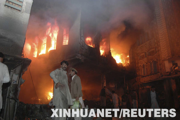 網友評論 條 2008-12-06 08:48:14 12月5日,在巴基斯坦西北邊境省首府白沙瓦,人們圍觀發生火災的爆炸事故現場。白沙瓦市一個人口密集的住宅區當天發生一起汽車炸彈爆炸,造成至少16人死亡,另有70人受傷。新華社/路透