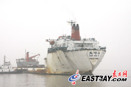 昨天夜里11時,“振華4”號輪靠上上海橫沙錨地。