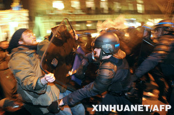 1月29日,防暴警察在法國首都巴黎街頭與示威者發(fā)生沖突