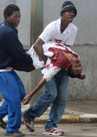 集會結束后,拉喬利納帶領大約2萬名群眾前往總統府“接管權力”,在總統府外與守衛部隊對峙。守衛部隊在總統府大門前的廣場上劃出紅線,警告示威者不可逾越,但仍有人不聽警告,試圖強行進入總統府。守衛部隊于是奉命開槍,當場打死多人。有現場目擊者稱,守衛部隊還使用了機槍和催淚彈。
