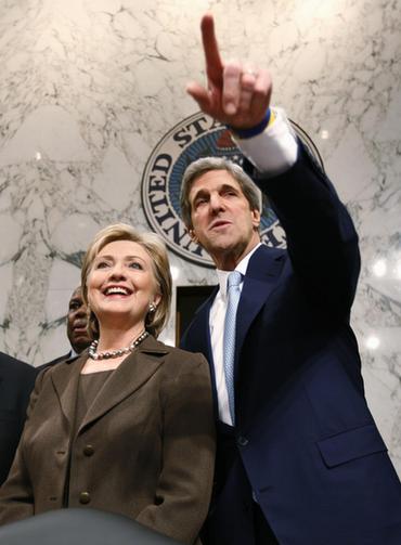 希拉里與參議員約翰·克里一同出席參議院外委會提名聽證會