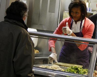 中國日報網環球在線消息:當美國總統貝拉克·奧巴馬正在為國內經濟日夜操勞時,第一夫人米歇爾·奧巴馬也沒閑著。據英國《每日郵報》報道,當地時間3月5日,米歇爾來到白宮附近的一家“施湯所”幫廚,希望以自己的實際行動呼吁更多民眾在經濟不景氣的情況下也能投入到志愿者的服務工作中來。