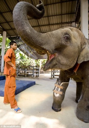 摩莎今年只有3歲,一直生活在位于泰國與緬甸邊境的叢林地帶。7個月大時,摩莎踩到了地雷,當時差點喪命。事故發生后,摩莎被迅速送到了“亞洲象之友”醫院,在那里醫生為它實施了手術,并為摩莎專門定制了一個假肢。醫生介紹稱,現在摩莎已經基本上適應了自己的假肢,不久將會重返泰緬邊境的家園。