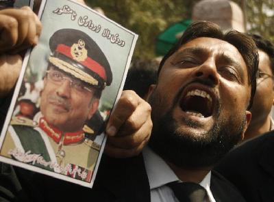 巴基斯坦律師手持總統扎爾達里照片抗議其行徑