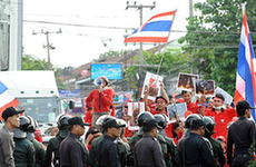 “紅衫軍”和防暴警察在峰會(huì)會(huì)場(chǎng)附近發(fā)生推搡